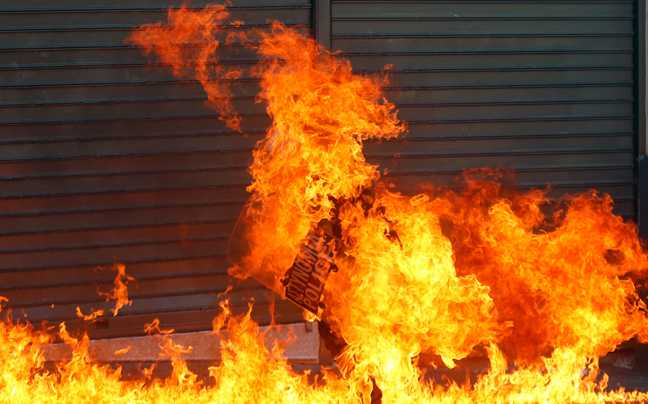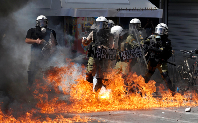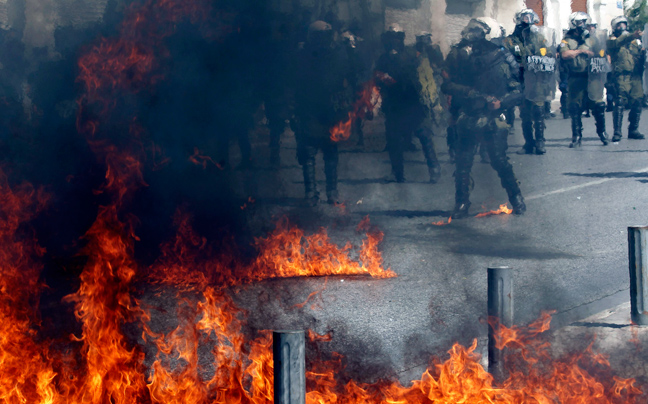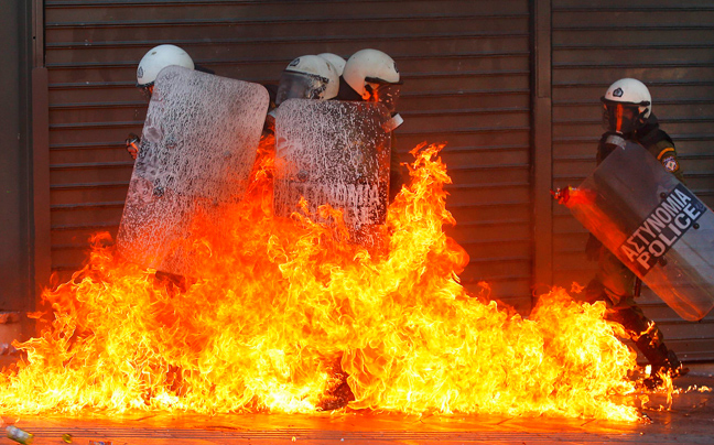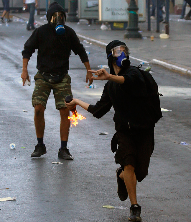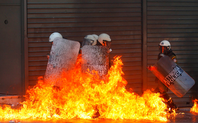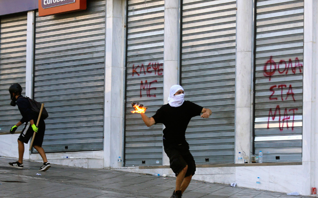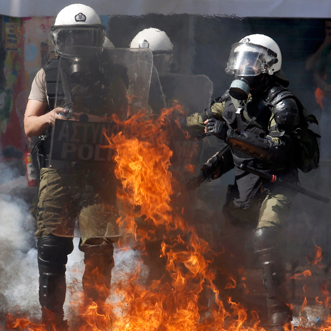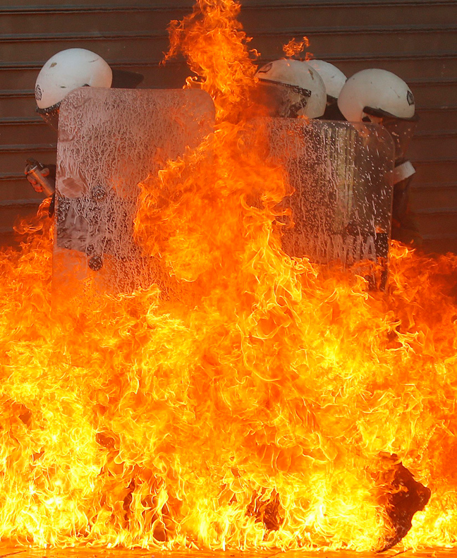 Καρέ καρέ οι επιθέσεις με μολότοφ στα ΜΑΤ